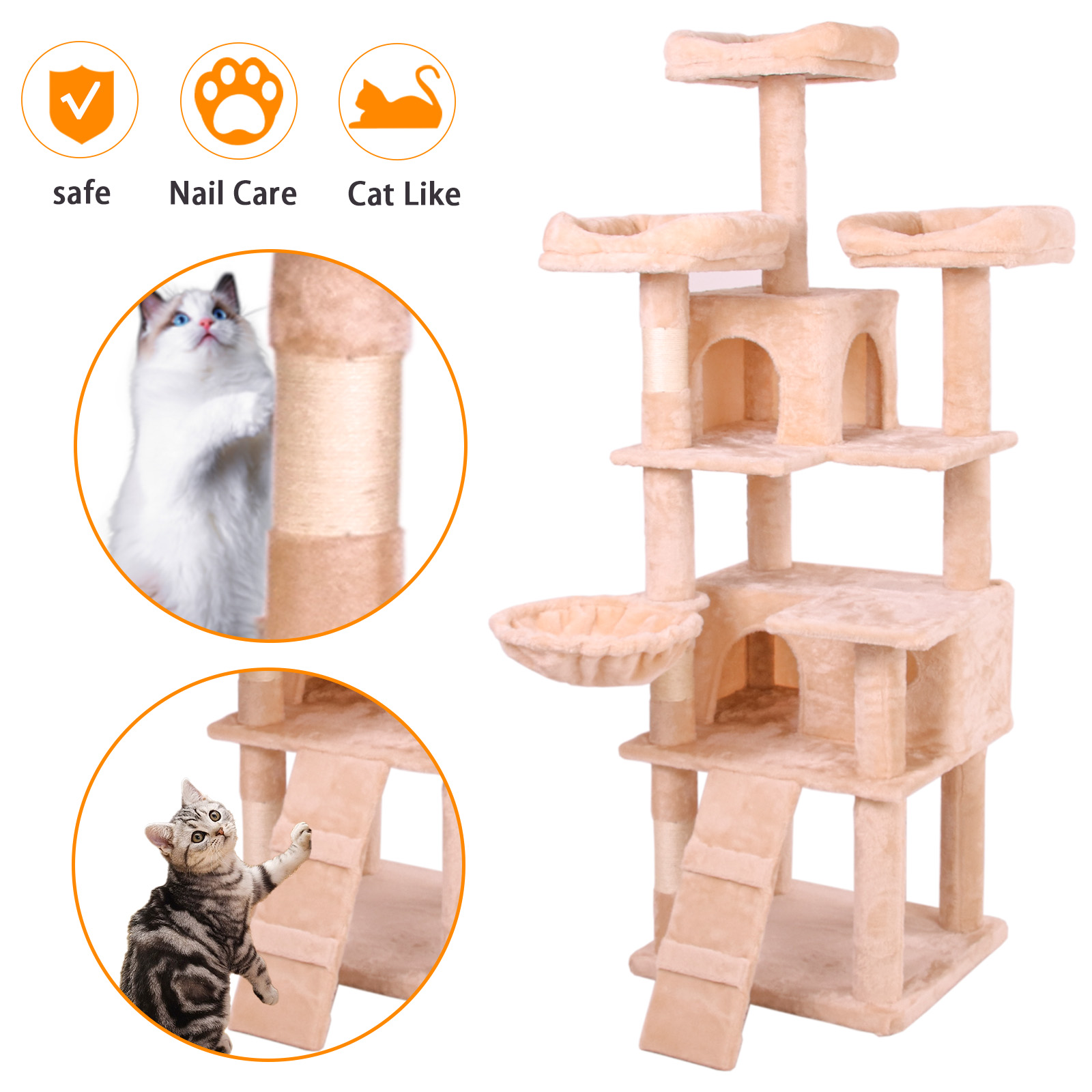 【Sturdy and Stable 】Stability is always the top priority. The bottom base of the cat tree is reinforced to guarantee the stability of the entire structure, and anti-toppling fittings are included to provide double security.This ensures that the entire cat tree is more sturdy and durable.
